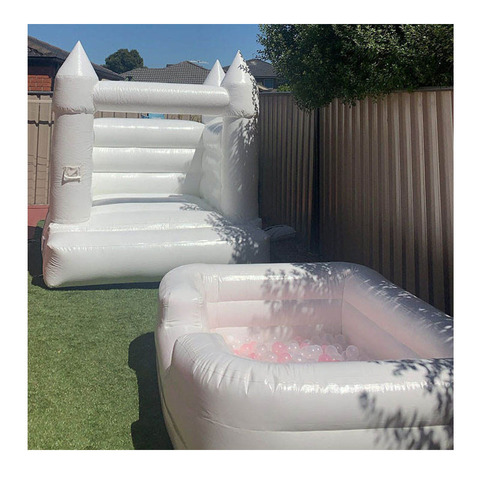 Mini ticari köy beyaz şişme kale Moonwalk Jumper düğün için hava sıkı top çukur ile sıçrama ev fedai
